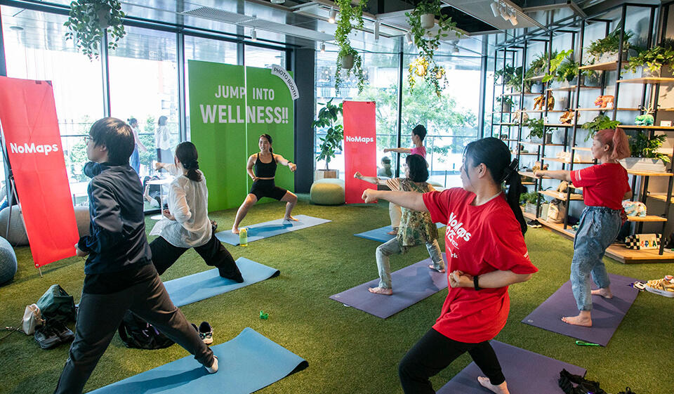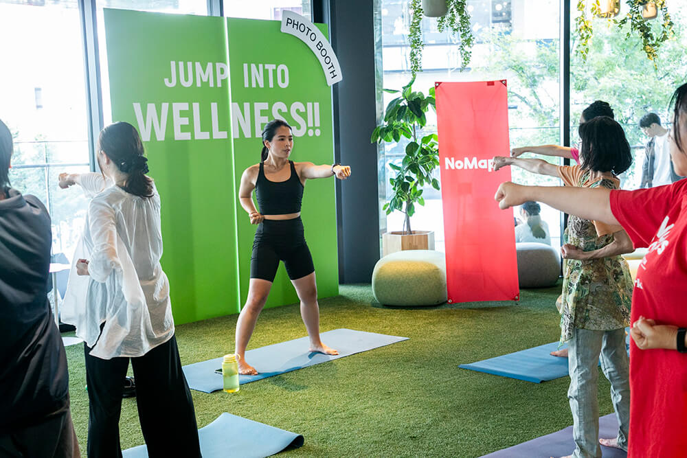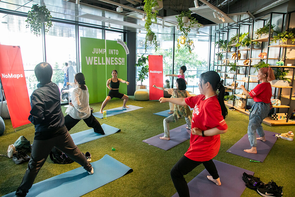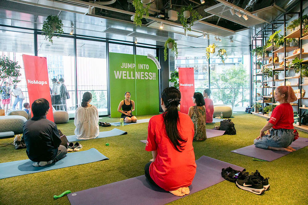 札幌に新しく誕生した商業施設の芝生エリアにてカレイラ美咲さんによるBUDO YOGAを開催し、その中でMandukaのヨガマットを使用しました。
