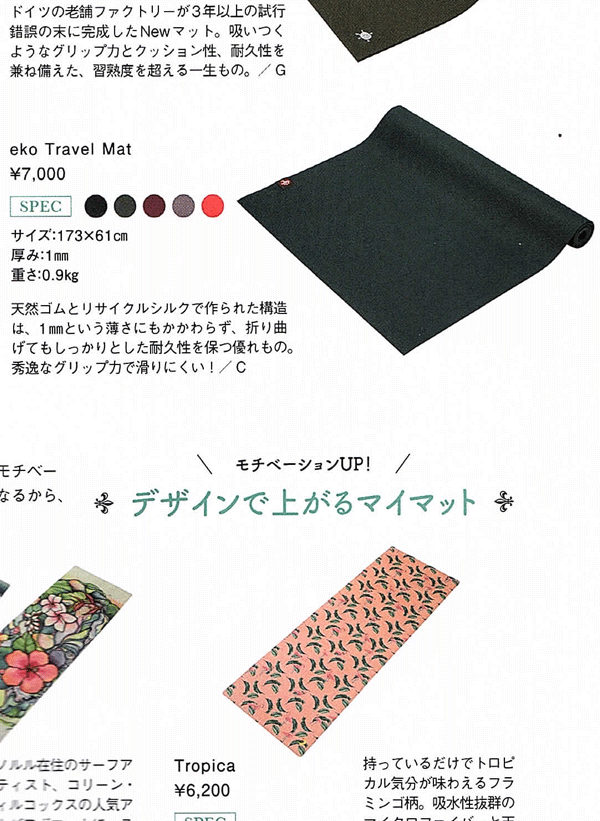 Yogini Vol.74 2020 2/07 メディア掲載 雑誌 20/01/2020/02/07皆様こんにちは。本日は、Yogini Vol.74に Mandukaアイテムが掲載されましたので、ご紹介いたします!【掲載商品】 P.32-33[Manduka] マットウォッシュ トラベルスプレー 59ml[Manduka] ブラックマット PRO 6mm[Manduka]エコスーパーライトトラベルマット 1.5mm メディア掲載 雑誌 お手入れ トラベルマット ブラックマット マットウォッシュ ヨガマット